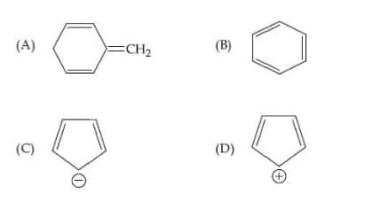 Compound $(\mathrm{B})$ is anti-aromatic as it has $4 \pi$ electrons