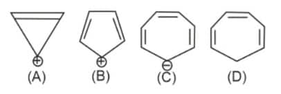 Compound $(\mathrm{C})$ is non-planar as the negative charge occupies an $s p^3$ hybridized orbital and hence it is non-aromatic
