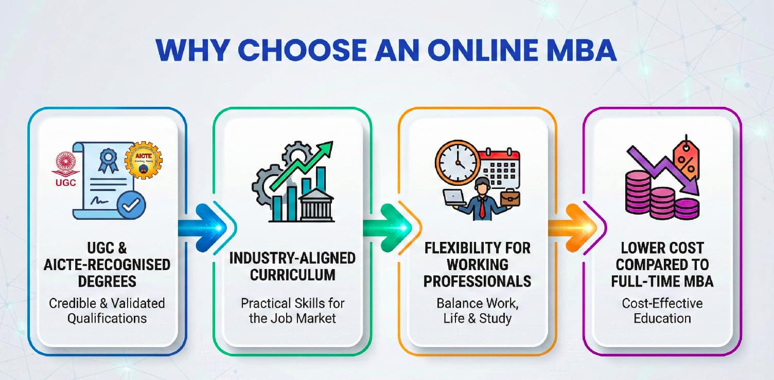 An Online MBA nowadays has evolved from just a degree to a strategic career accelerator. It has become a rewarding career investment for working professionals, career changers, and learners seeking management expertise without quitting their jobs. With the changing higher education ecosystem, almost every institutions, from top private universities to IIMs, are offering the Online MBA degree. However, for many students, the question remains: Is an Online MBA actually worth it?