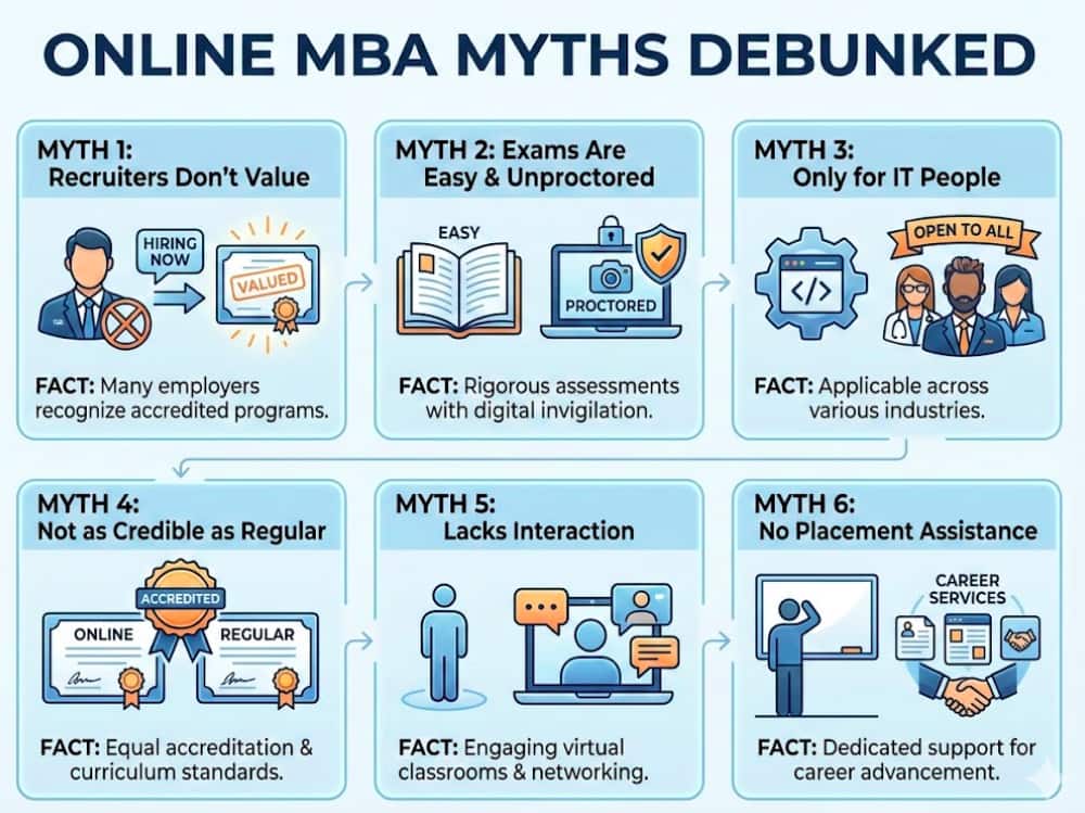 With the popularity of Online MBA growing, there is a lot of myths and misinformation circulating about it.
