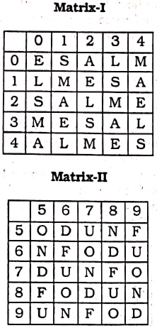 Solution : Here, from the matrices (Matrix 1 and matrix 2) we get the numbers that represents the letters of the word 'LEND' —