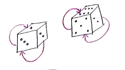 So, the opposite to the face containing one dot is the face containing six dots.