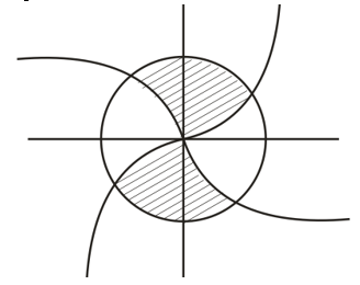 Thus above curves partition the circle into 4 regions of equal area, and inequality is satisfied by two regions. So, the area is half the area of a circle.