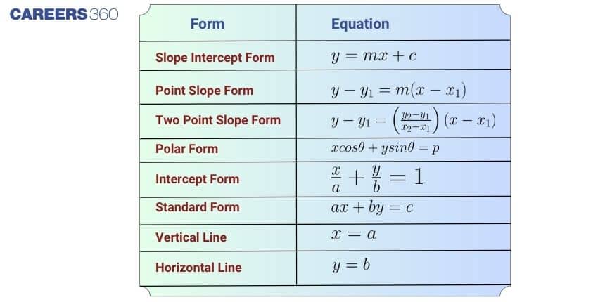 Equation of a Line: The general equation of a line is $ax + by + c = 0$.