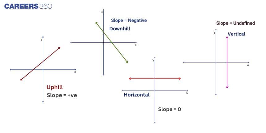 Inclination of a Line: In a coordinate plane, a line forms an angle with the positive direction of the x-axis. This angle, measured anticlockwise, is called the inclination of the line. For example, if a line rises 3 units vertically for 4 units horizontally, its inclination $\theta$ can be found using $ \tan \theta = \frac{3}{4} $.