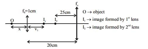 also magnification $\left|\mathrm{m}_1\right|=\left|\frac{\mathrm{v}_1}{\mathrm{u}_1}\right|=\frac{1}{\mathrm{x}-1}$