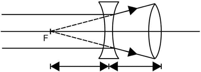 Effective focal length of silverd lens is, $\frac{1}{f_e}=\frac{1}{f_m}-\frac{2}{f_e} \Rightarrow f_e=\frac{-60}{11} \mathrm{~cm}$