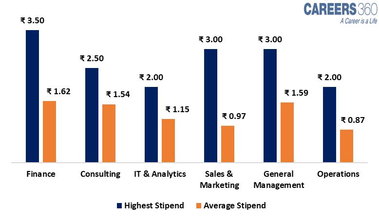 Finance and IT & Analytics have the highest placement percentage of 23% in the IIM Trichy placement drive 2024. The finance department received the highest stipend of Rs 3,50,000 and an average stipend of Rs 1,62,109 during summer placements 2024.