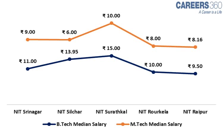 The above-mentioned table shows the details of NITs median salary for B.Tech and M.Tech.