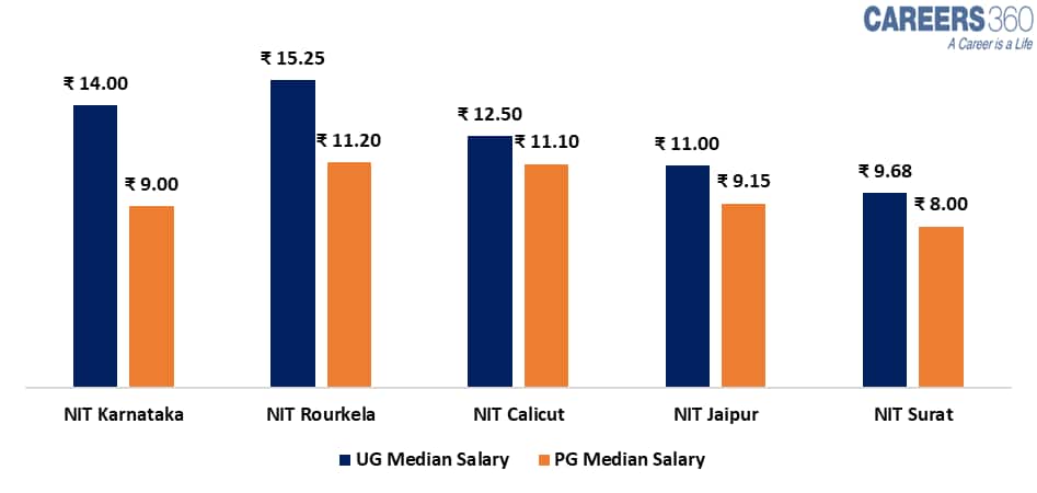 On List of Top NITs Placements Salary-WiseAccording to the NIRF report 2025 for the academic year 2023-24, NIT Rourkela offers the highest median salary for undergraduate students at Rs 15.25 LPA (Lakhs Per Annum). This is followed by NIT Karnataka at Rs 14 LPA and NIT Calicut at Rs 12.5 LPA.