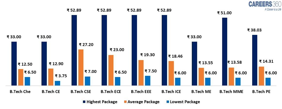 - The highest package stood at Rs 52.89 lakhs, and the average package stood at Rs 27.2 lakhs in CSE placements at NIT Trichy.